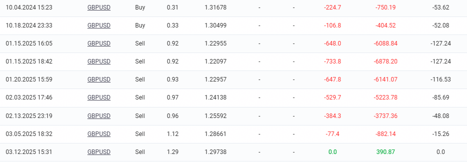 Unfortunately, reality isn’t so kind right now. The current drawdown is sitting at over 16%, and the oldest GBPUSD transaction dates all the way back to early October. That’s not just a “hiccup”; that’s a full-blown case of indigestion.