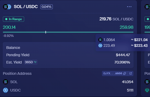 - How “jumpy” is this pair? If your SOL/USDC pool is bouncing around, you might want to set a wider range next time. Wide range = more uptime, but usually lower APR.