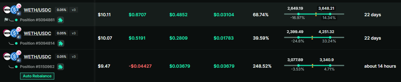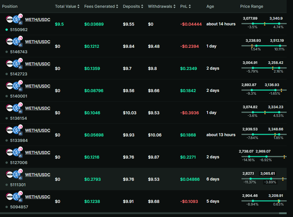 Next, I want to expand this experiment beyond WETH/USDC liquidity pools. The goal is to test the same wide, middle, and tight range strategy across additional pairs.